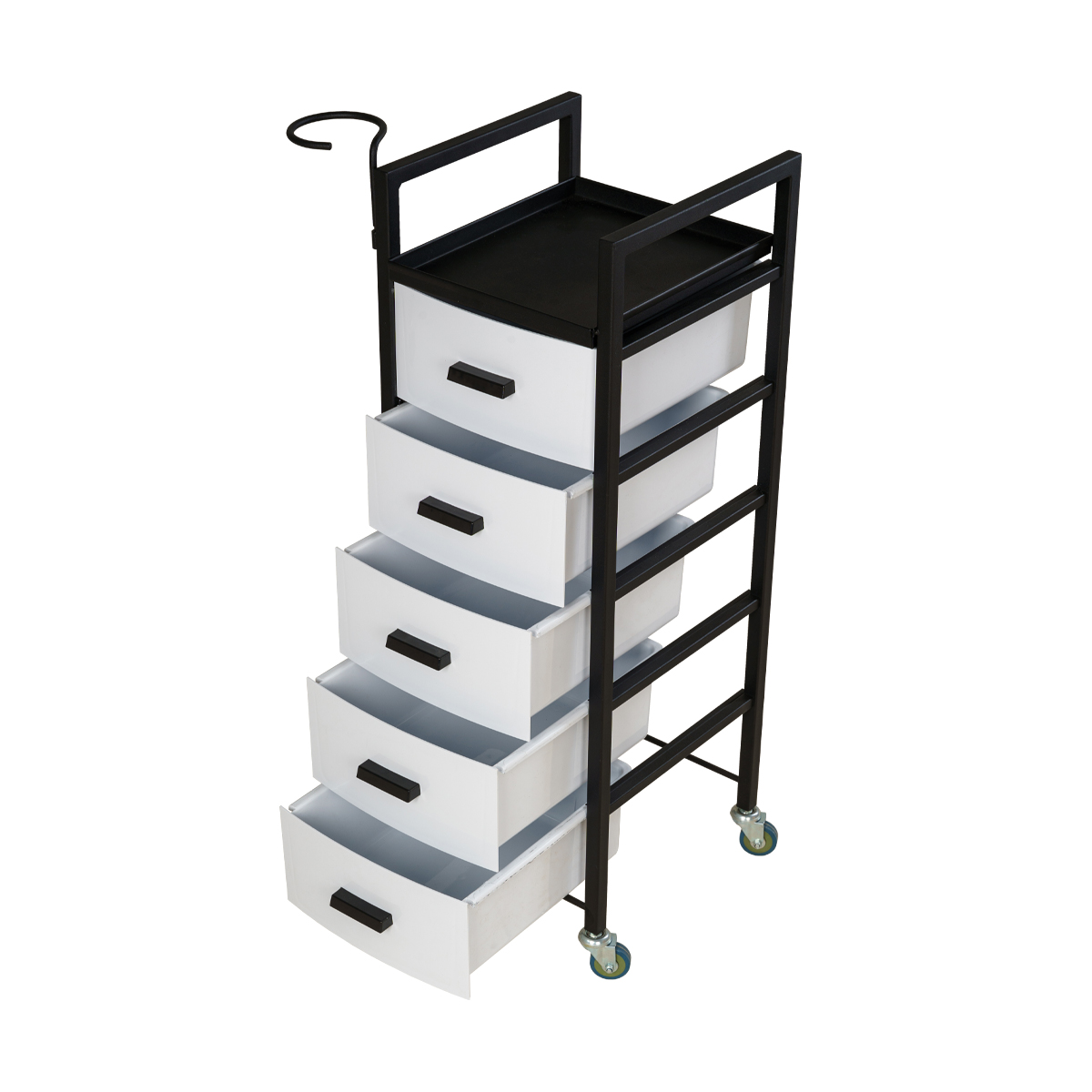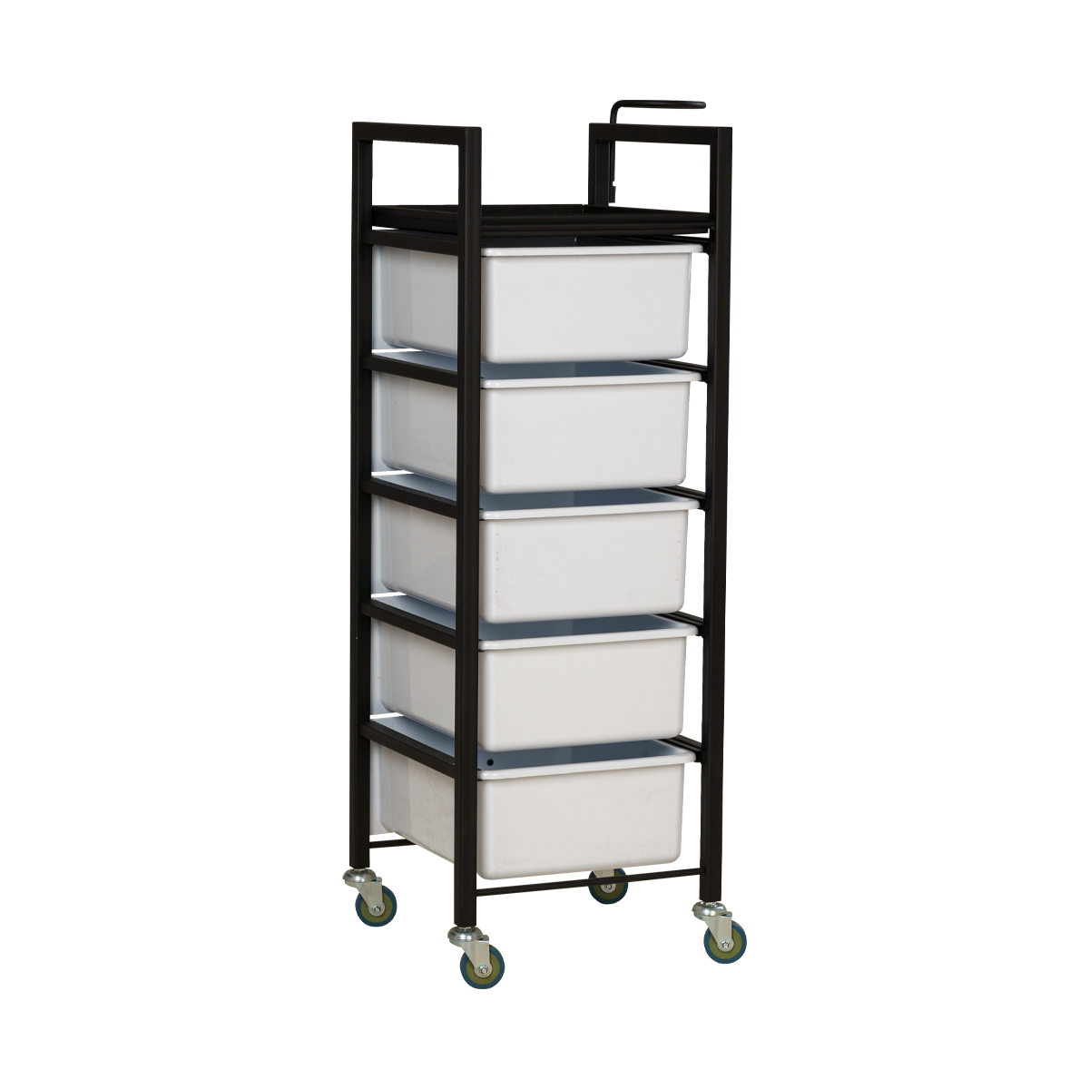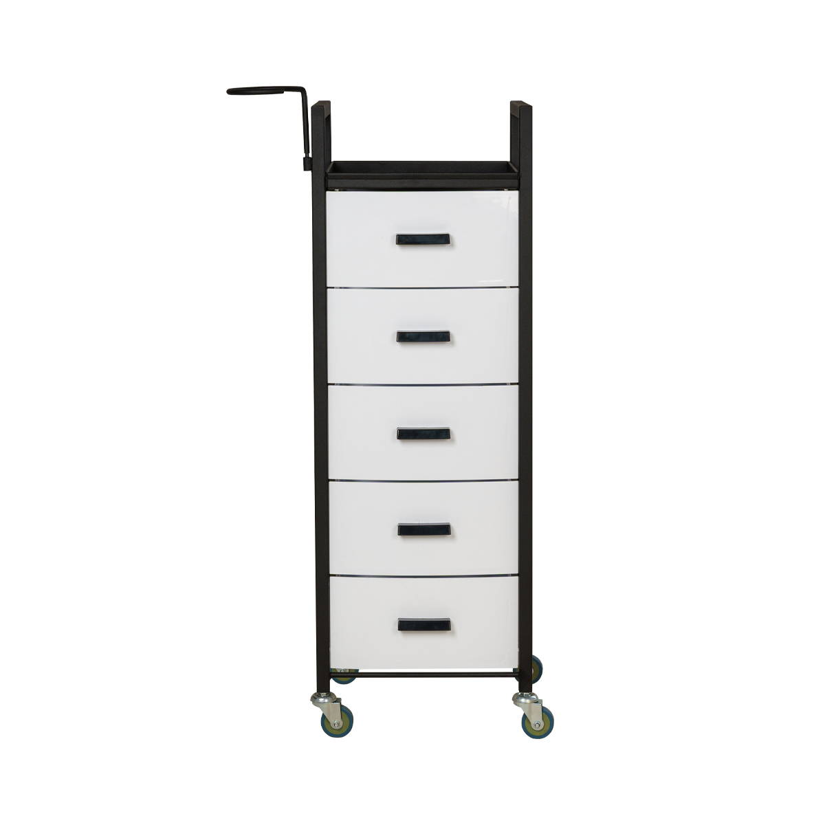 Парикмахерская тележка Дуглас Производитель: Компания МэдисонКомплектация: каркас, 5 ящиков, боковые панели, полка, держатель для фена, колеса Характеристики: Каркас: металлический, со сверхпрочным порошковым покрытием черного цвета Боковые стенки: ударопрочный пластик. Ящики: из ударопрочного пластика, съемные, 5 штук. Держатель для фена: металлический Колеса: пластиковые, поворотные Доступные цвета: белый Тележка парикмахерская Дуглас – функциональное оборудование для хранения инструментов и расходных материалов. Для принадлежностей в парикмахерской тележке есть пять выдвижных ящиков. Верхняя полка позволит мастеру держать под рукой инструменты, необходимые во время работы с клиентом. На боковине установлен практичный фенодержатель. Вращающиеся колесики обеспечивают плавное и практически бесшумное перемещение оборудования в пределах рабочей зоны. Парикмахерское оборудование изготовлено из качественных материалов. Тележка установлена на прочный стальной каркас. Для создания боковин, ящи