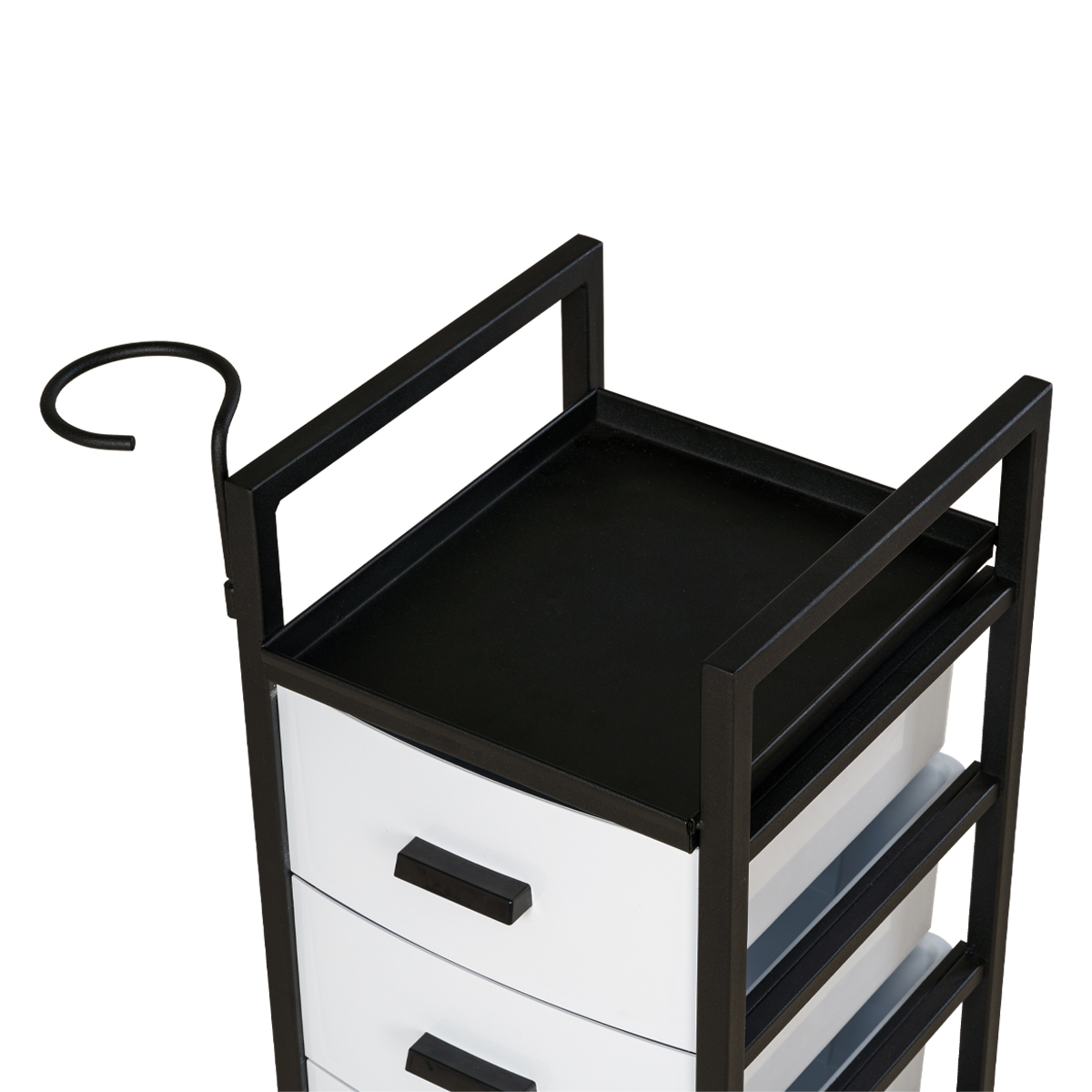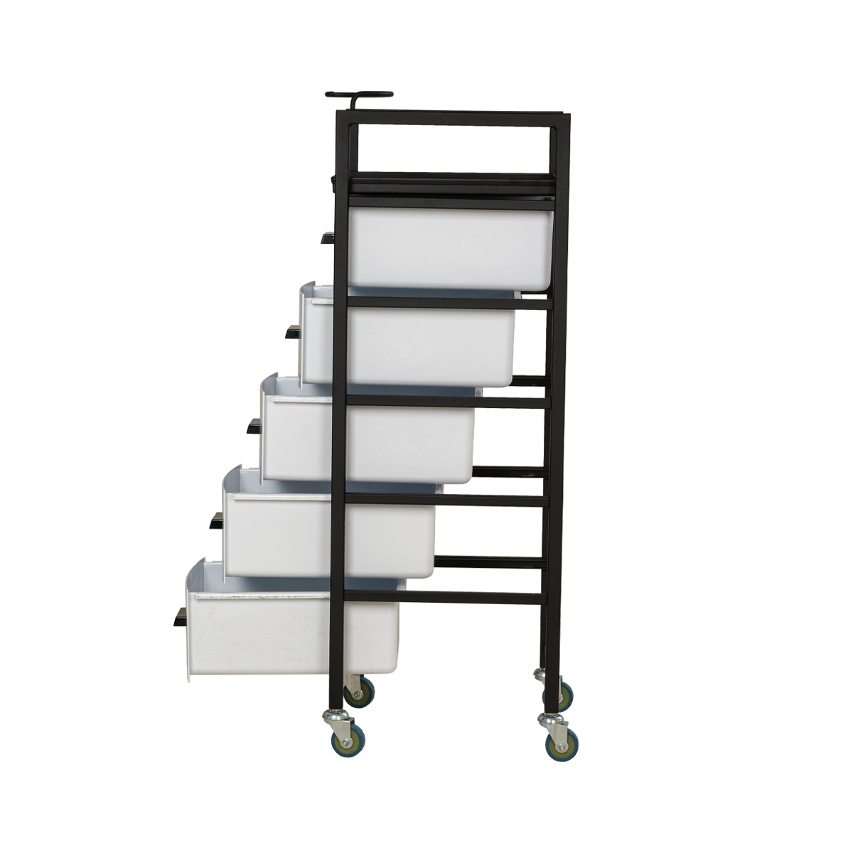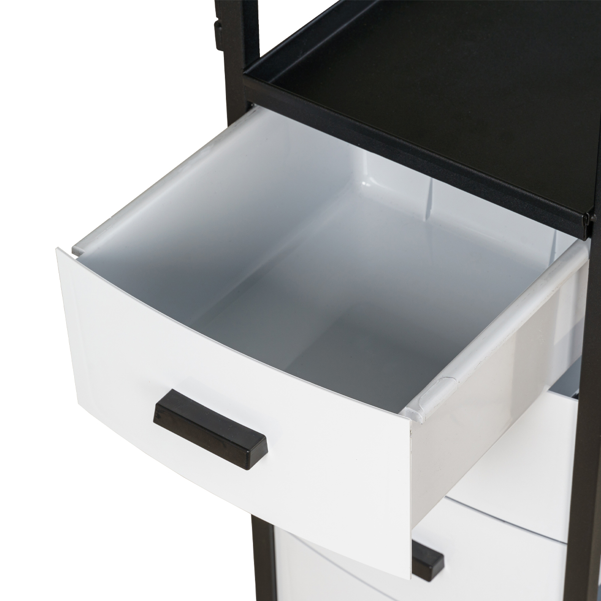 Парикмахерская тележка Дуглас Производитель: Компания МэдисонКомплектация: каркас, 5 ящиков, боковые панели, полка, держатель для фена, колеса Характеристики: Каркас: металлический, со сверхпрочным порошковым покрытием черного цвета Боковые стенки: ударопрочный пластик. Ящики: из ударопрочного пластика, съемные, 5 штук. Держатель для фена: металлический Колеса: пластиковые, поворотные Доступные цвета: белый Тележка парикмахерская Дуглас – функциональное оборудование для хранения инструментов и расходных материалов. Для принадлежностей в парикмахерской тележке есть пять выдвижных ящиков. Верхняя полка позволит мастеру держать под рукой инструменты, необходимые во время работы с клиентом. На боковине установлен практичный фенодержатель. Вращающиеся колесики обеспечивают плавное и практически бесшумное перемещение оборудования в пределах рабочей зоны. Парикмахерское оборудование изготовлено из качественных материалов. Тележка установлена на прочный стальной каркас. Для создания боковин, ящи