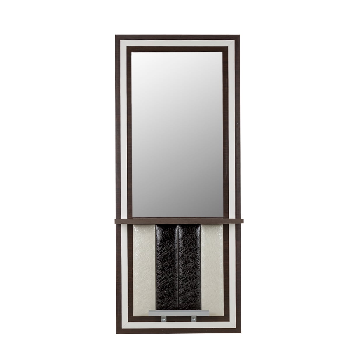 Парикмахерское зеркало Диамант Комплектация: основа, зеркальное полотно, полка, подставка для ног. Характеристики: Тип зеркала: одностороннее, прямоугольное, с настенным креплением. Основание: прочная ЛДСП. Полка: из ЛДСП, прямоугольная, на всю ширину основы. Подставка для ног: выполнена из хромированного металла, крепится к каркасу зеркала. Одностороннее парикмахерское зеркало Диамант позволит правильно и удобно оборудовать рабочее место парикмахера. Оно комплектуется прямоугольным зеркальным полотном на прочном каркасе из ЛДСП, удобной полкой и подставкой для ног. Часть каркаса под полкой обшита экокожей, что подчеркивает эксклюзивный дизайн модели. Зеркальная поверхность обладает устойчивостью к тепловым воздействиям и коррозии. Ее можно очищать с помощью специальных моющих средств для зеркал и стекол. Благодаря оптимальным размерам зеркала обеспечивается необходимый угол обзора для мастера и клиента в процессе работы.