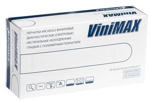 ViniMax Перчатки одноразовые винил с полимерным покрытием белые L 50 пар/уп.